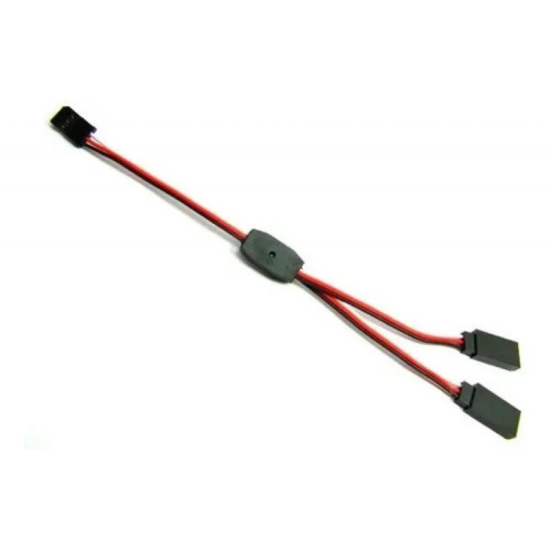 Extensão em Y 15cm para aeromodelos.Conectores padrão Futaba.Fio 22 AWG preto, vermelho e branco.Isolador central plástico.